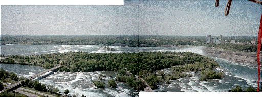 After boarding the gondola the steel cable is slowly unwound. The gondola slowly rises and the view of the falls and surrounding area only becomes more stunning as you ascend. When you reach 400 feet you have 15 minutes to enjoy the enthralling view. The City of Buffalo, New York, located 20 miles to the southeast, and The City of Toronto, Ontario, located 40 miles to the northwest, could clearly be seen. In several ways the balloon offers a better view of the falls than a helicopter flight. There is no noise, no vibration, and you are closer to the falls (the helicopters fly at 1,000 feet, or more). The balloon gives you time to study various aspects of the falls. In a helicopter you're moving too fast. ![]()