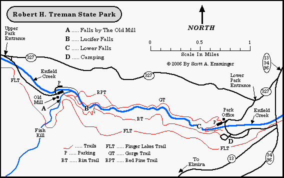 Location: Central Tompkins County, Route 327, five miles south of Ithaca. From the intersection of Routes 13 and 327, located 2 miles south of Ithaca, follow Route 327 west for 0.3 of a mile to the Lower Park Entrance, or an additional 2.2 miles to the Upper Park Entrance.