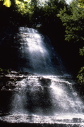 After viewing Gossamer Cascade continue into the woods while keeping a eye out for poison ivy. You will come to a trail in a short distance. Turn left and follow it downstream. In roughly 0.2 of a mile there is a side trail leading to Buff Cascade. The cascade is located about 300 feet from the South Branch. It is a ribbon cascade being 120 feet high with a 6 foot wide crest.